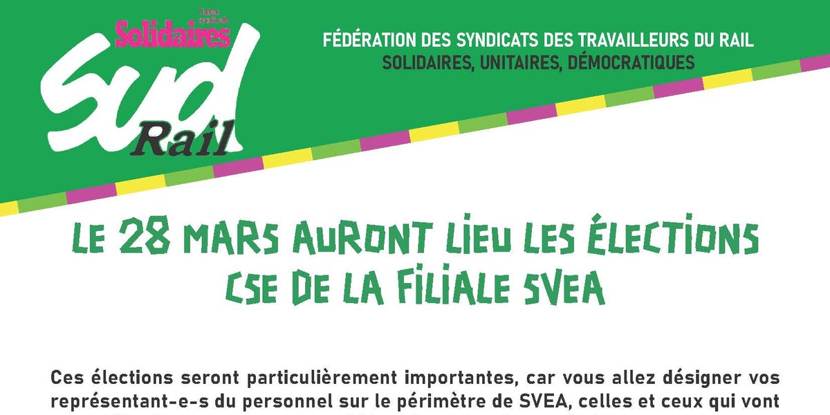 Ces élections seront particulièrement importantes, car les cheminotes et les cheminots de la nouvelle filiale SNCF vont désigner leurs représentant-e-s du personnel sur le périmètre de SVEA, celles et ceux qui vont vous défendre sur toutes les problématiques locales, mais également et surtout désigner les syndicats qui négocieront les accords d’entreprise de la SVEA qui doivent remplacer les accords SNCF d’ici fin mars 2026