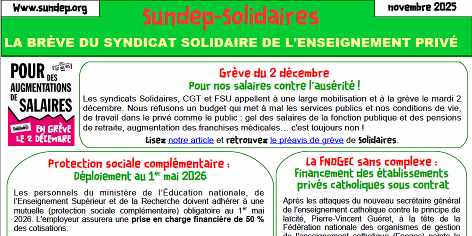 La brève du Sundep Solidaires pour novembre-décembre 2025