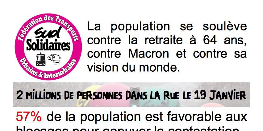 Le flyer de la fédération Sud/Solidaires des Urbains et Interurbains pour commencer dès maintenant à mobiliser pour le 07 février.