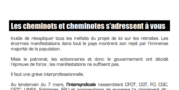 Nous, cheminotes et cheminots, sommes en grève reconductible depuis une semaine. Il en est de même dans quelques autres secteurs.