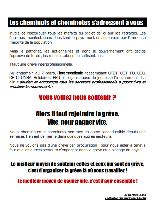 Le meilleur moyen de soutenir celles et ceux qui sont en grève, c’est d’organiser la grève là où vous travaillez !