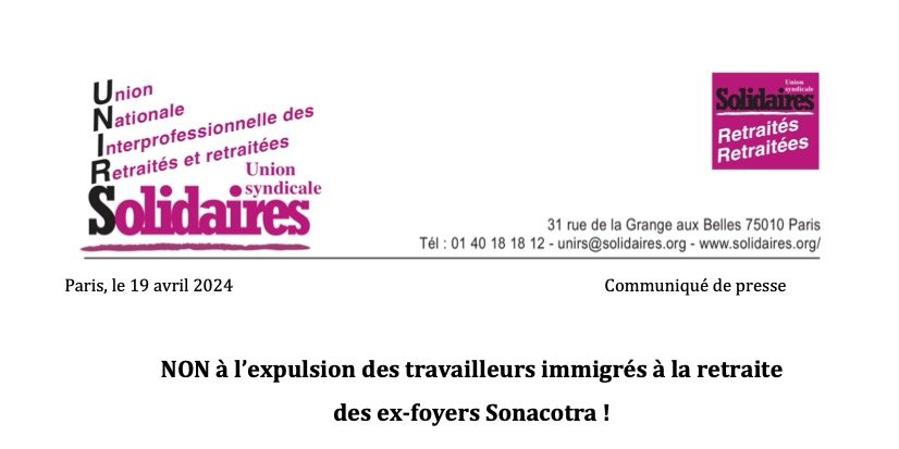 L’UNIRS apporte son soutien aux travailleurs immigrés retraités victimes de cette politique et à leurs associations de défense.