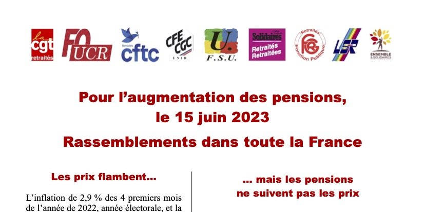 Dans l'immédiat : Nous revendiquons une revalorisation immédiate de toutes les pensions, y compris les complémentaires AGIRC-ARRCO, MSA, IRCANTEC, fonctionnaires, … pour compenser l’inflation depuis le 1er janvier.
