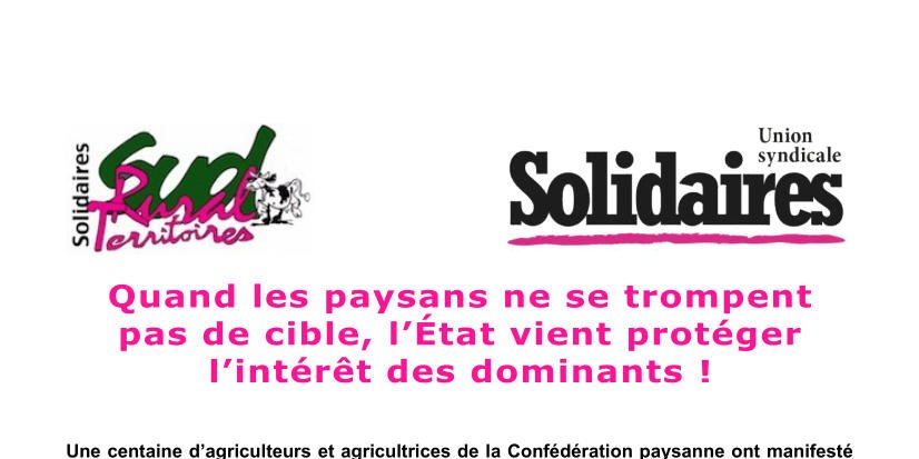 SUD Rural Territoires adresse tout son soutien aux camarades de la Confédération Paysanne et exige leur libération immédiate sans poursuites !