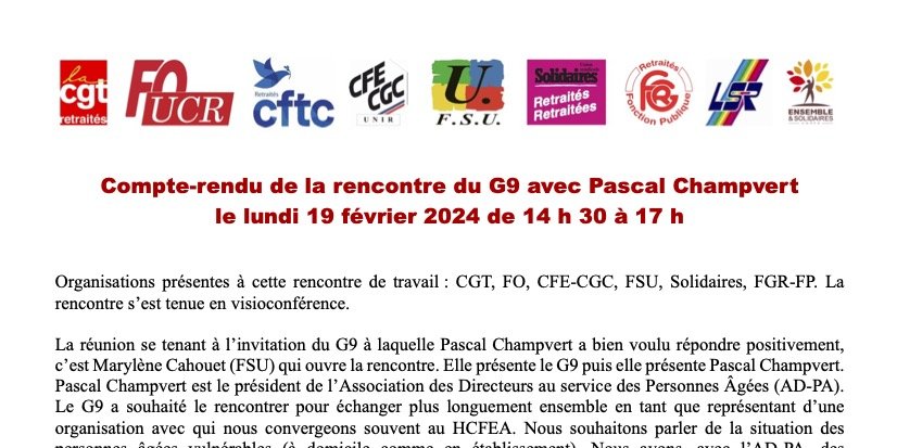 Compte-rendu de la rencontre du G9 avec Pascal Champvert le lundi 19 février 2024 de 14 h 30 à 17 h