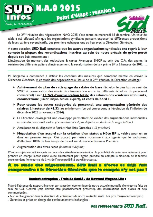 Vous trouverez un point d'étape syndical dans le cadre des NAO Salaires 2025 dans la restauration ferroviaire.