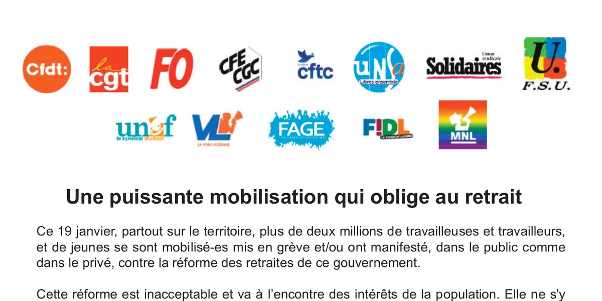 RETRAITES : appel intersyndical à la grève du 31 janvier 2023