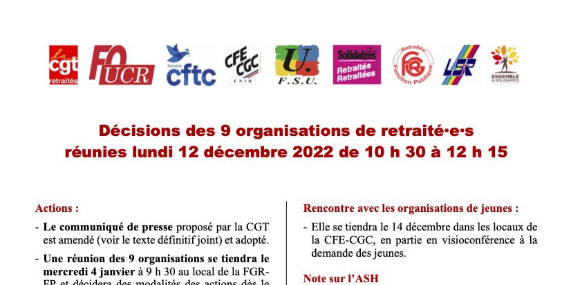 Décisions des 9 organisations de retraité·e·s le 12 décembre 22