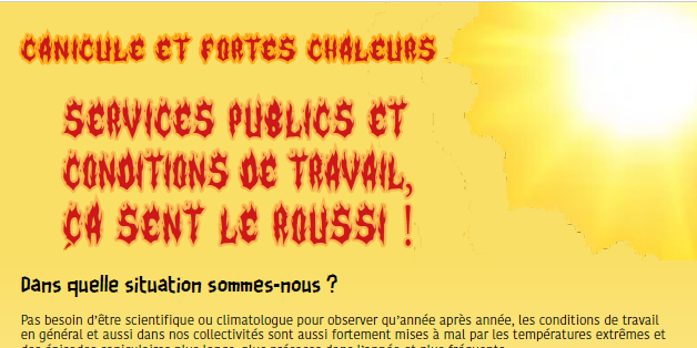 Pas besoin d’être scientifique ou climatologue pour observer qu’année après année, les conditions de travail en général et aussi dans nos collectivités sont aussi fortement mises à mal par les températures extrêmes eten général et aussi dans nos collectivités sont aussi fortement mises à mal par les températures extrêmes et des épisodes caniculaires plus longs, plus précoces dans l’année et plus fréquents.