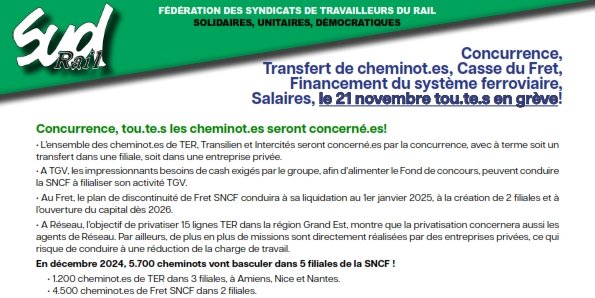 Il est temps de riposter ! Les 4 fédérations syndicales de la SNCF appellent les cheminotes et cheminots à une grève massive le 21 novembre !