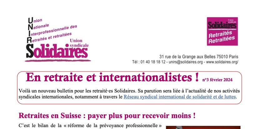 Et voici le troisième bulletin lié à l’actualité de nos activités syndicales internationales, notamment à travers le Réseau syndical international de solidarité et de luttes .