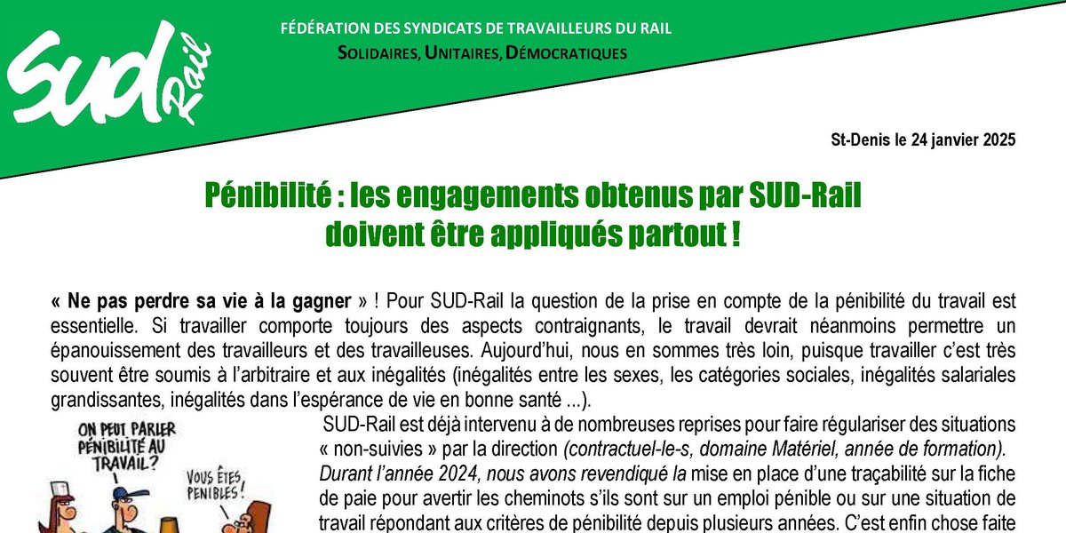 « Ne pas perdre sa vie à la gagner » ! Pour SUD-Rail la question de la prise en compte de la pénibilité du travail est essentielle.