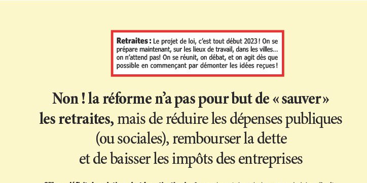 Retraites : Le projet de loi, c’est tout début 2023 ! On se prépare maintenant, sur les lieux de travail, dans les villes... on n’attend pas! On se réunit, on débat, et on agit dès que possible en commençant par démonter les idées reçues !