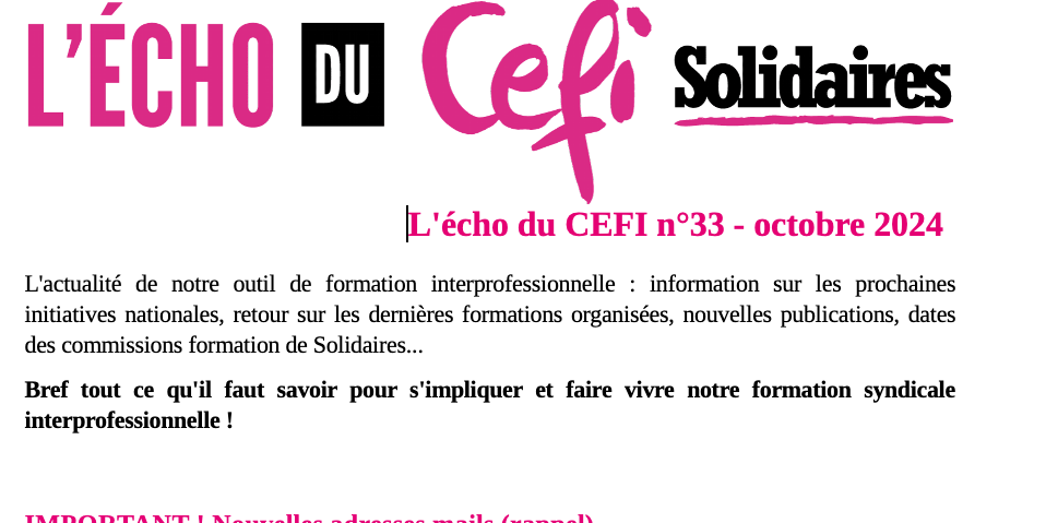 L'écho Du Cefi N° 33 Octobre 2024