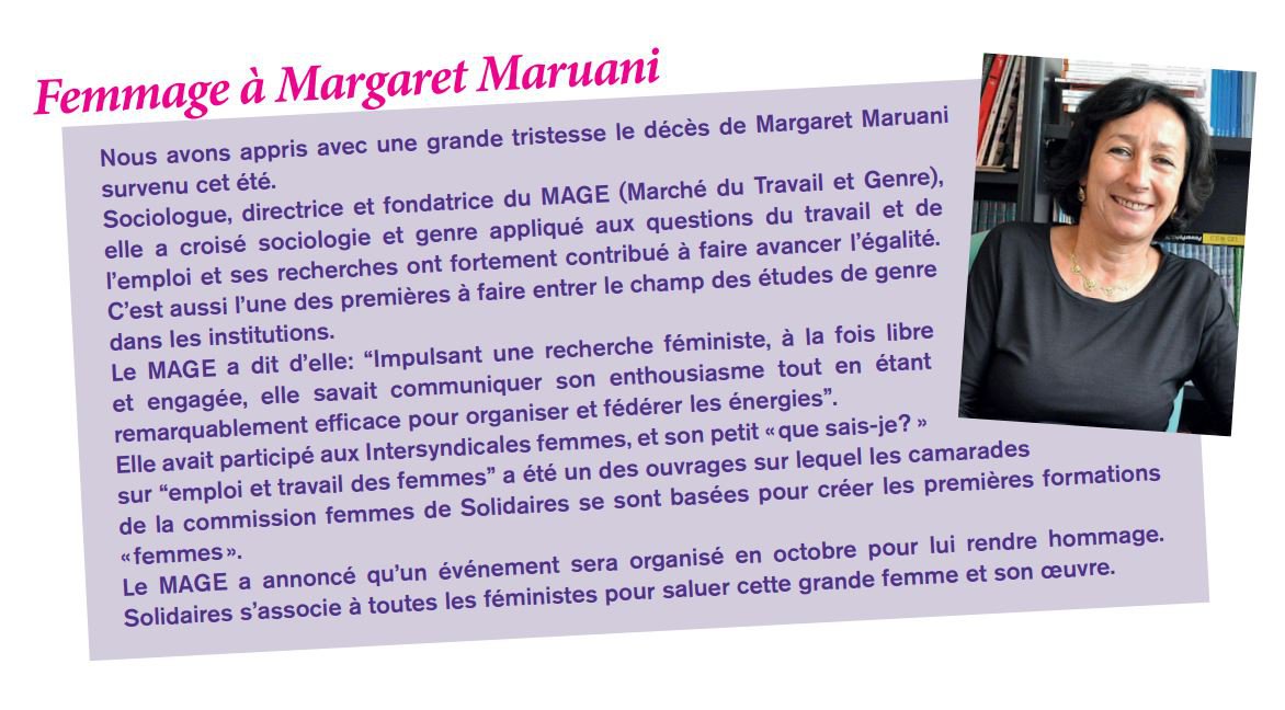 Nous avons appris avec une grande tristesse le décès de Margaret Maruani survenu cet été.